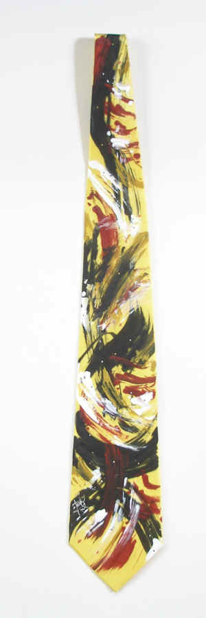 Mitchel uses only the highest quality silk in creating these dramatic art collectable ties. These creative ties are presented in a variety of tasteful colors, each with its own distinctive appeal...the brighter colors allow for a festive appearance, while the darker colors provide a more conservative look. Each hand-painted silk tie is an artistic statement of Mitchel's own concept and design. He has blended colors onto exclusive fabrics made from the finest silk to the hand-sewn finished necktie that he hopes you will enjoy wearing.